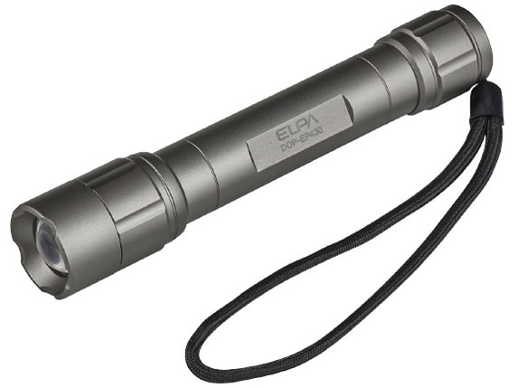 LEDアルミライト DOP-EP430は、軽量アルミボディのLED懐中電灯で、明るさ調整機能付き。耐久性が高く、防水仕様でアウトドアや非常時にも適しています。コンパクトなデザインで持ち運びも便利です。