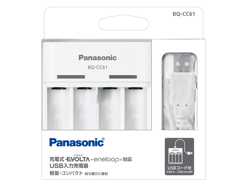 BQ-CC61は、Panasonic製のニッケル水素充電池向けの充電器です。最大4本の電池を同時に充電し、個別充電機能を備えています。過充電防止機能を搭載し、安全性も高く、コンパクトなデザインで持ち運びにも便利です。家庭やアウトドアで活躍します。