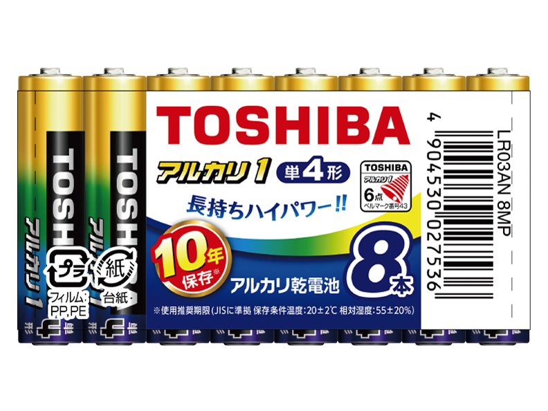 東芝 アルカリ1 アルカリ乾電池 単4形 8本入り LR03AN 8MPの中古新品公開買取価格はこちら。